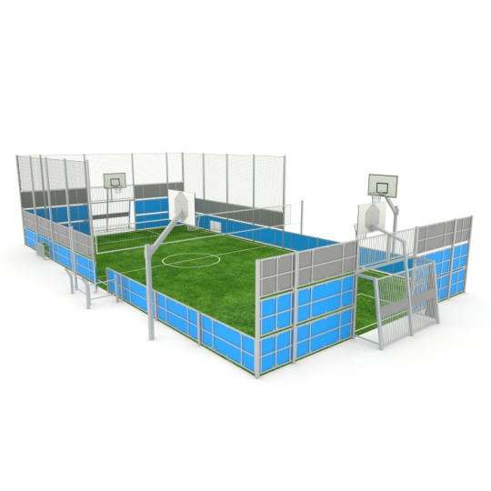Ein multifunktionaler Spielplatz, der eine unabhängige Sportanlage sein kann, auf der Sie Fußball, Volleyball, Basketball und vieles mehr spielen können. Dank der Modularität der Größe und des funktionalen Designs sowie der Möglichkeit, Material- und Farbvarianten zu wählen, kann Arena an individuelle Bedürfnisse angepasst werden.